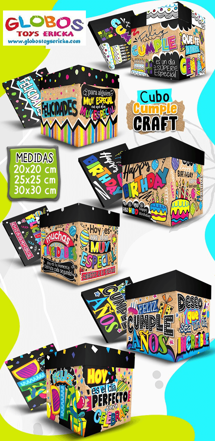 Caja cubo Cumple Craft, paquete con seis piezas.