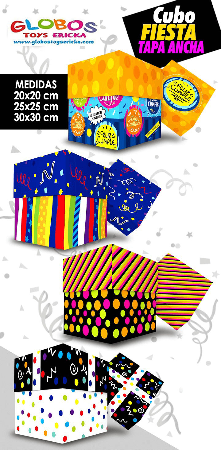 Caja cubo Fiesta tapa ancha, paquete con 6 piezas surtido en los modelos de la imagen.
