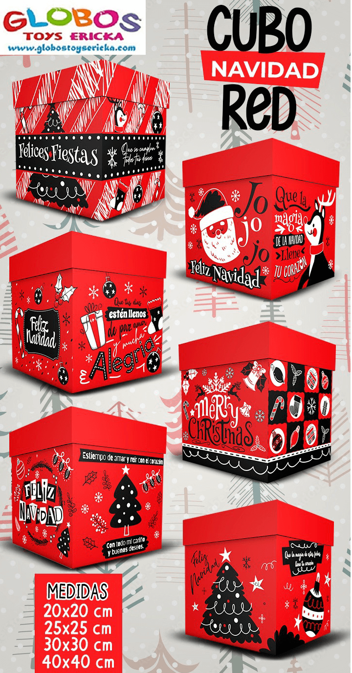 Caja cubo navidad red, paquete con 6 piezas por tamaño.