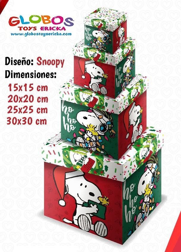 Caja cubo Navidad Snoopy, paquete con cuatro piezas.