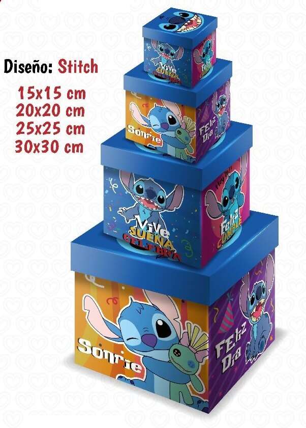 Caja cubo Stitch sonrie, paquete con cuatro piezas.